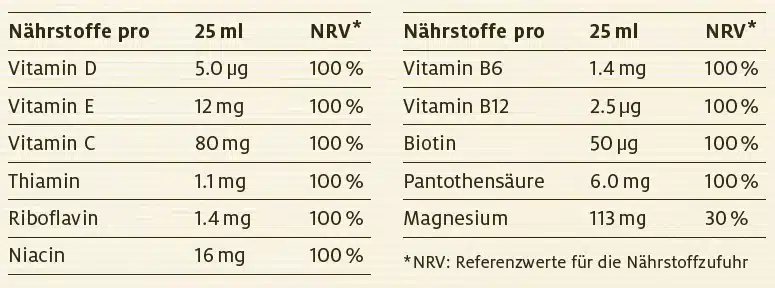 - Zawiera 10 witamin, magnez oraz rozpuszczalny błonnik.